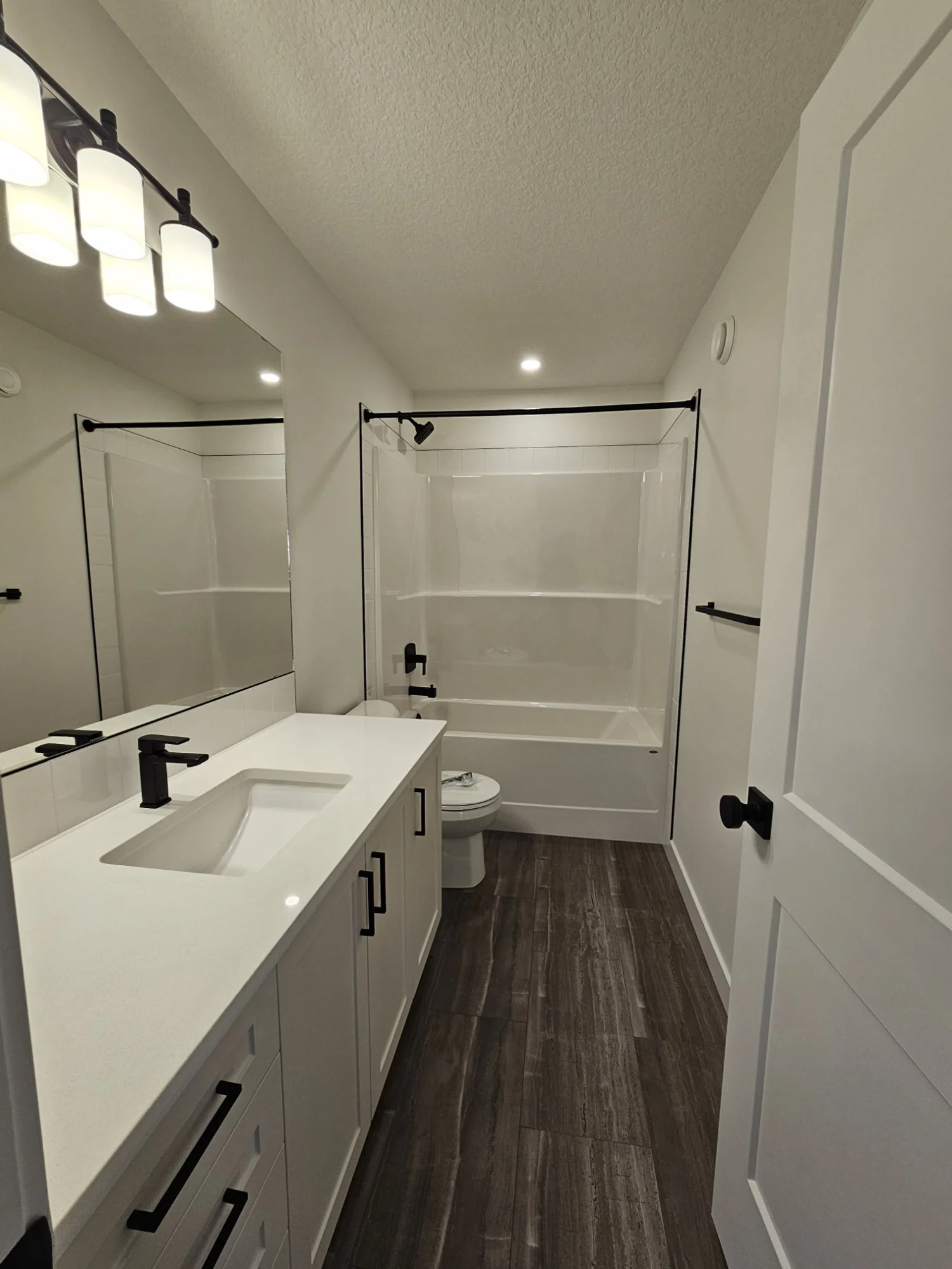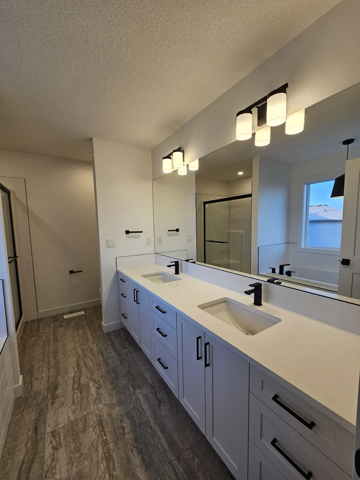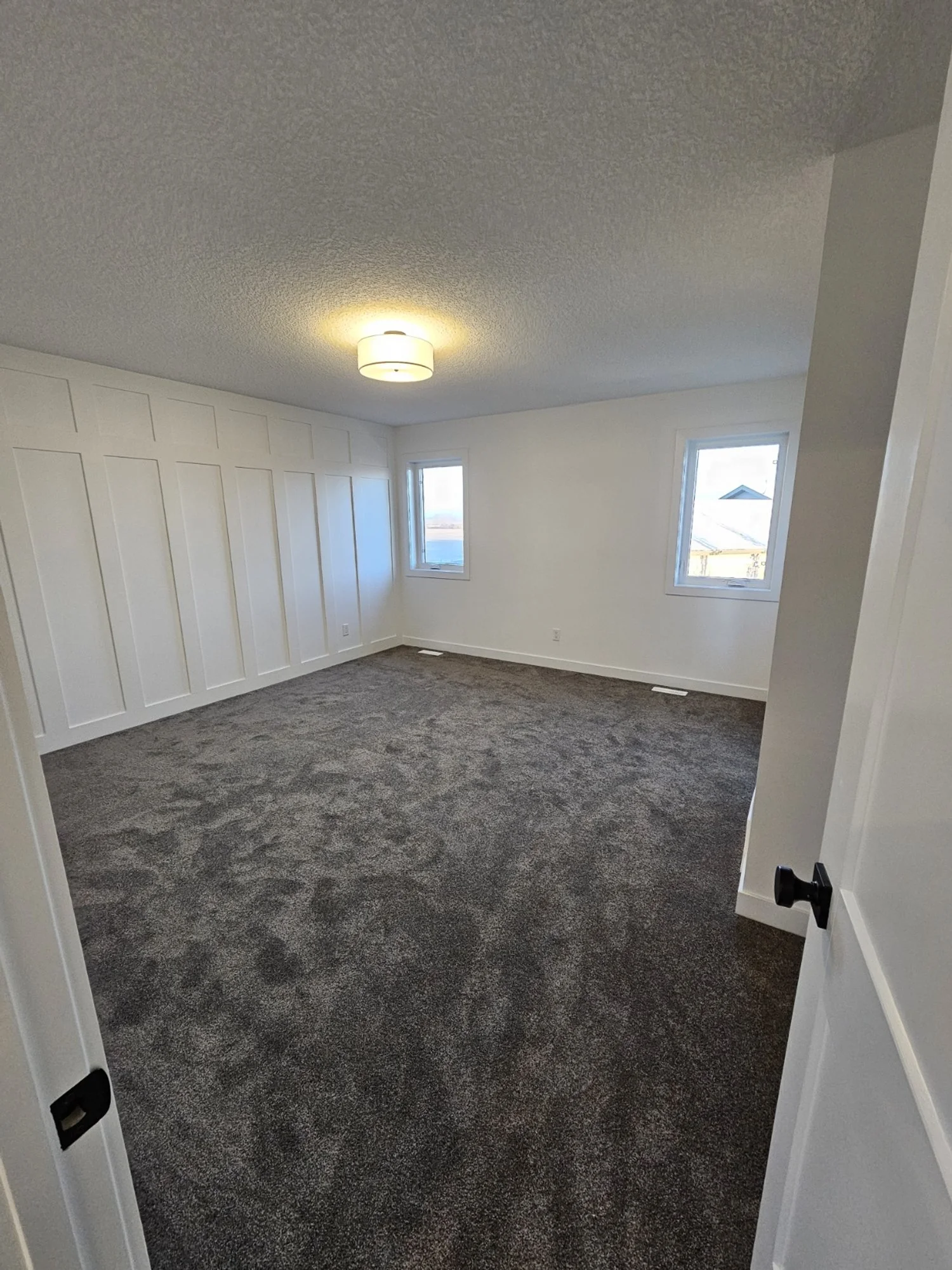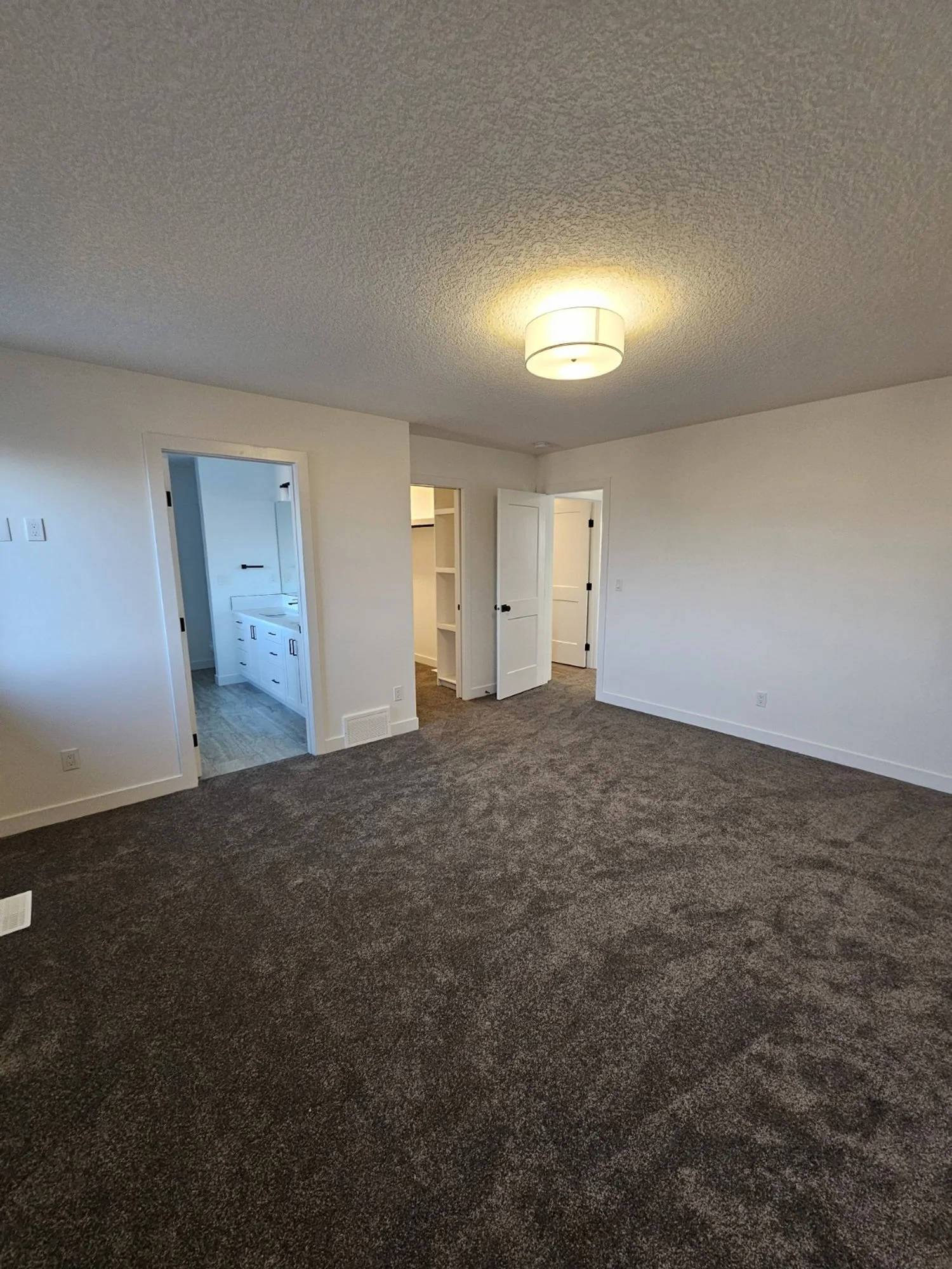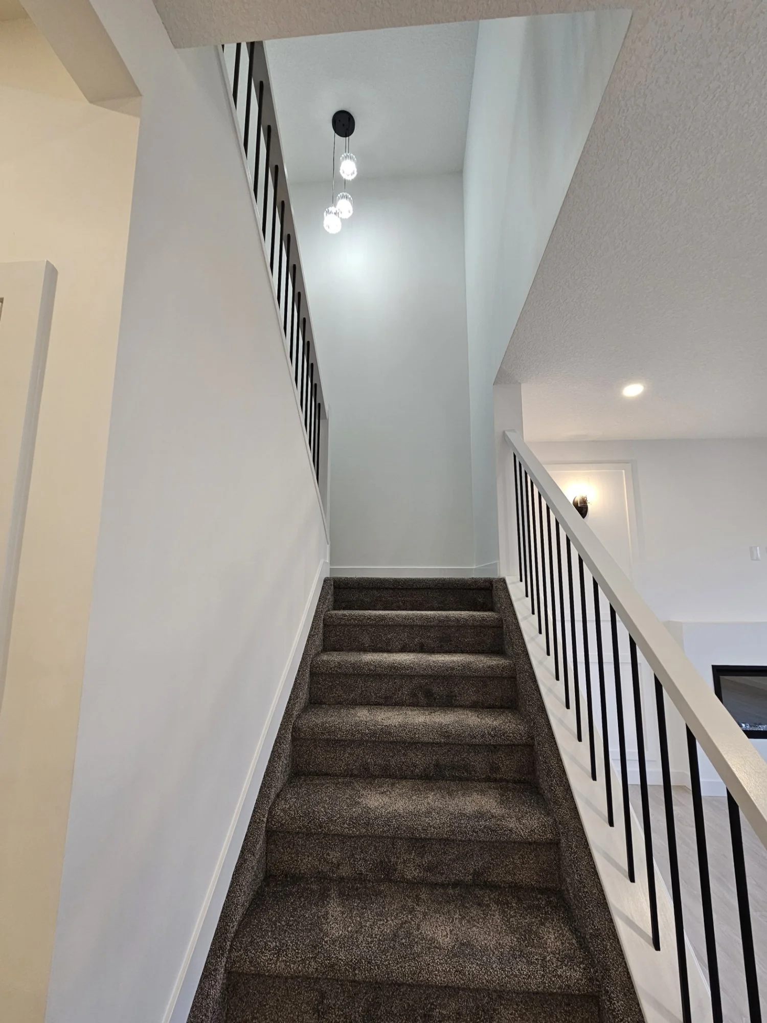 This beautifully finished two-story home complete with over 1853 ft. and a double attached garage. The main floor features a spacious entry way, a walk thru pantry, and an open concept living, dining room and kitchen with quartz countertops throughout. This beautiful property features 3 bedrooms on the second floor and a main floor den. The large master bedroom has an ensuite with a full 5 foot shower, tub and double vanity as well as a spacious walk in closet. The home also boasts a second-floor laundry. The basement is a full 9 feet and ready to add an in-law or rental suite with a side entry. At the current stage there is still the ability to add your personal touches.
